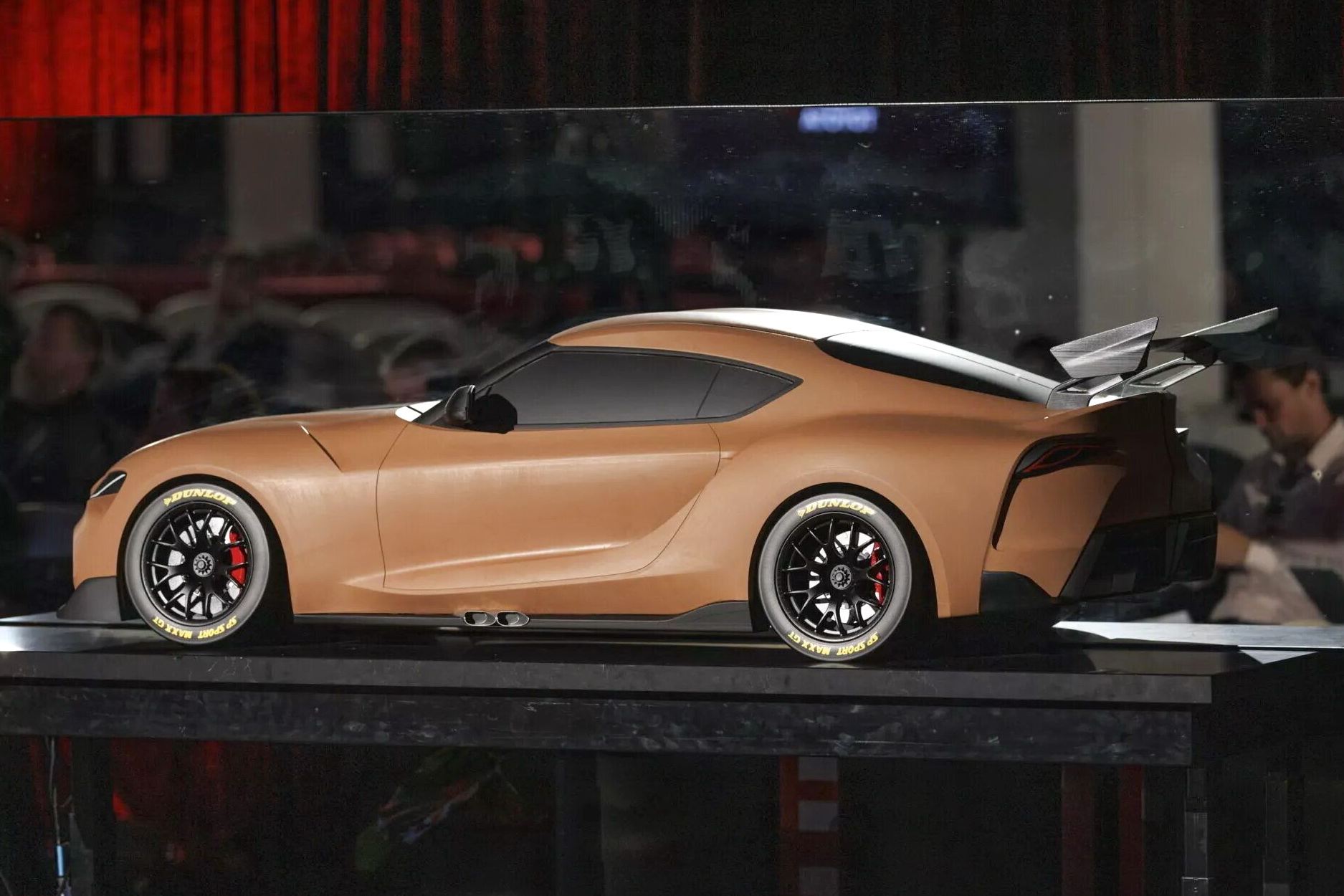 Toyota показала несколько рендеров и глиняную модель, которые представляют, как будет выглядеть гоночный автомобиль, с большим задним крылом и парой блестящих хромированных выхлопных труб, торчащих сбоку. Гоночная Supra также имеет экстремальный передний сплиттер, большие воздухозаборники в переднем бампере и вырез в капоте.