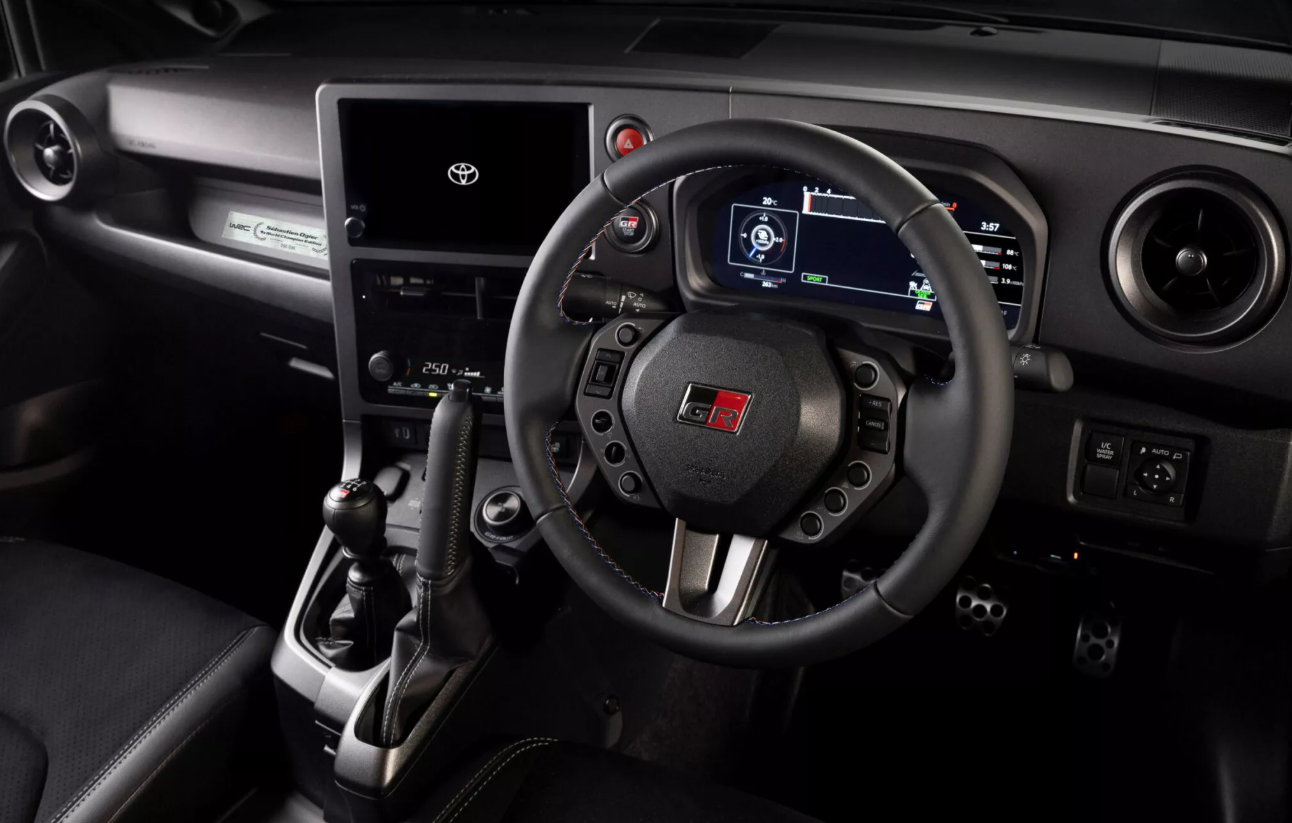 В салоне установлено новое компактное рулевое колесо и элементы управления в стиле спорткара Rally2. Сиденья отделаны кожей и алькантарой, а в качестве акцентов использована контрастная трехцветная строчка. Есть табличка с указанием версии и номера экземпляра. Даже цифровая приборная панель получила уникальную графику для новых режимов движения. GR Yaris Sébastien Ogier 9x World Champion Edition поступит в серийное производство позже в этом году, стоимость объявят позже.