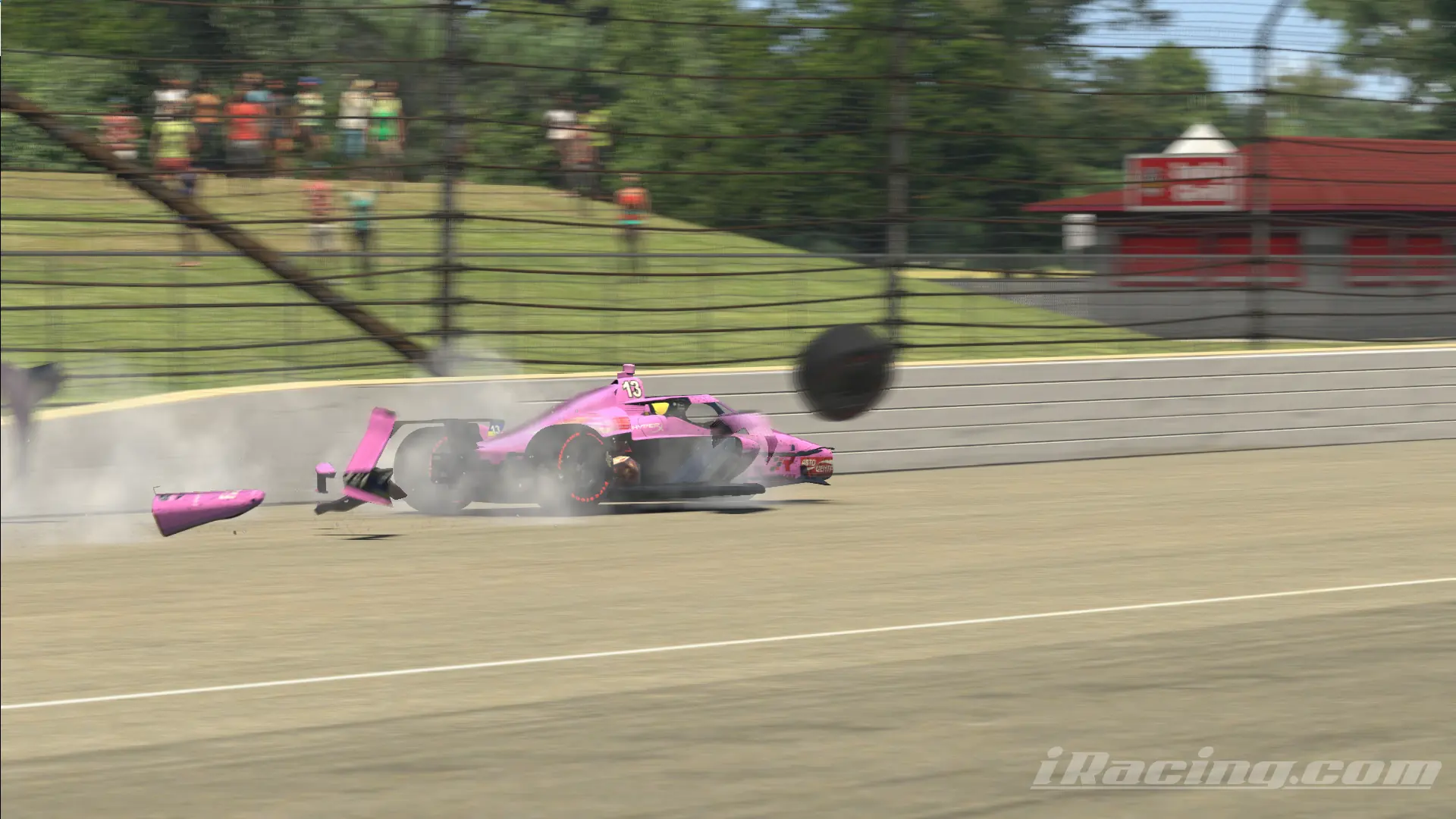 Но все равно украинская команда ехала, пусть и теряя по несколько секунд с круга - ни о каком первом месте можно было уже не мечтать. Надеялись хотя бы на зачетную «десятку», продолжая дрифтить в каждом из четырех поворотов «Старой кирпичницы». Но даже при таком мастерском пилотировании слабо управляемого болида все-таки не удалось «выжить». Машина упрямо соскальзывала внутрь поворота и на скорости около 400 км/час болид Алексея закрутило вокруг своей оси и растрощило о несколько отбойников. Колеса отлетели и повредили пять чужих болидов. Кто знает, чем это могло бы закончится, будь это реальный автоспорт...