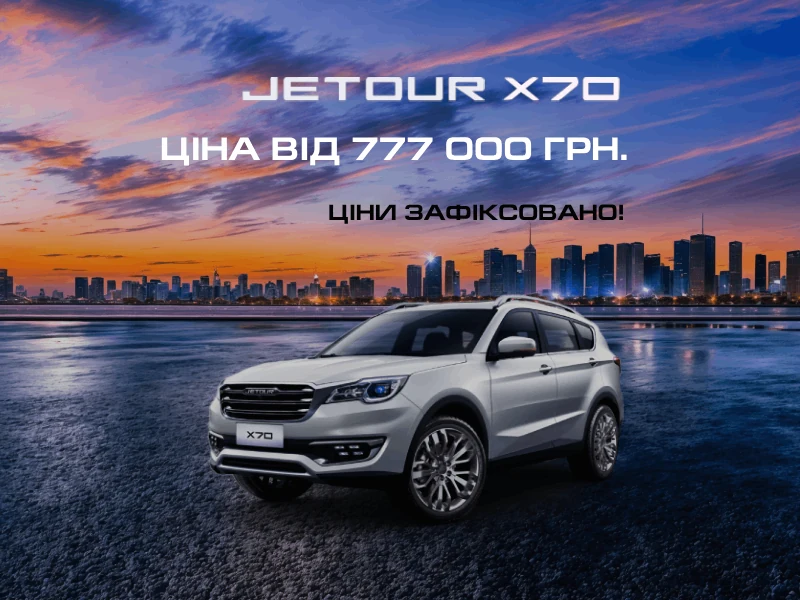 *Пропозиція діє на автомобілі CHERY JETOUR X70 Luxury (Лакшері) 2022 та 2023 року виробництва в дилерській мережі ТОВ "СІ ЕЙ АВТОМОТІВ" на всій території України за винятком АР Крим і тимчасово окупованих територій з 13.01.2024 р. по 12.02.2024 р. або до повного розпродажу наявного складу вказаних автомобілів, в залежності від того що настане раніше. Кількість автомобілів CHERY JETOUR X70 Luxury (Лакшері) 2022 та 2023 року виробництва обмежена.