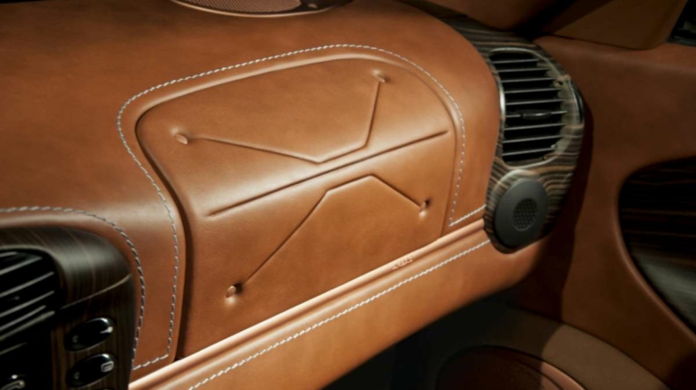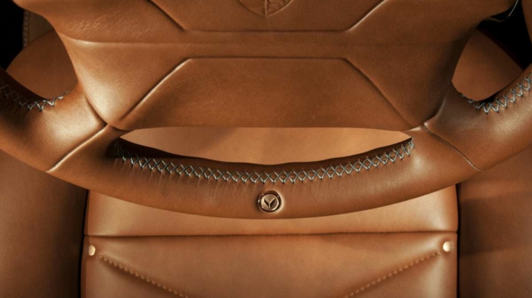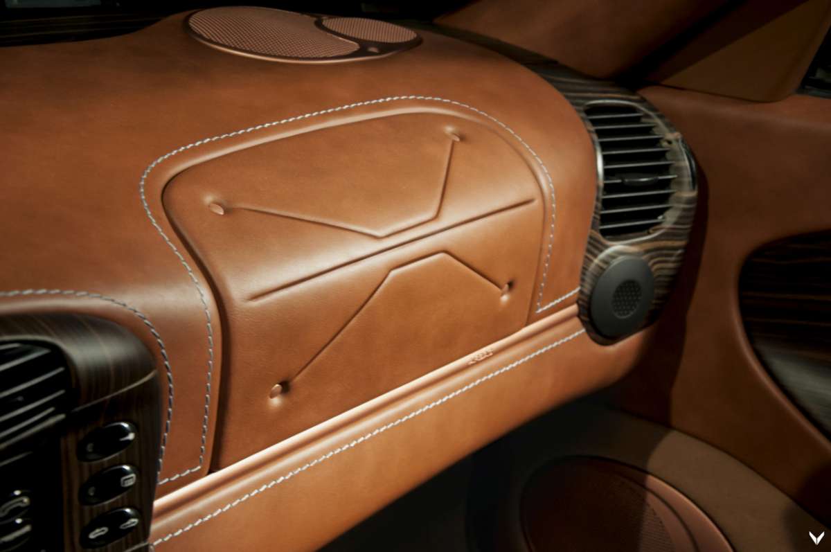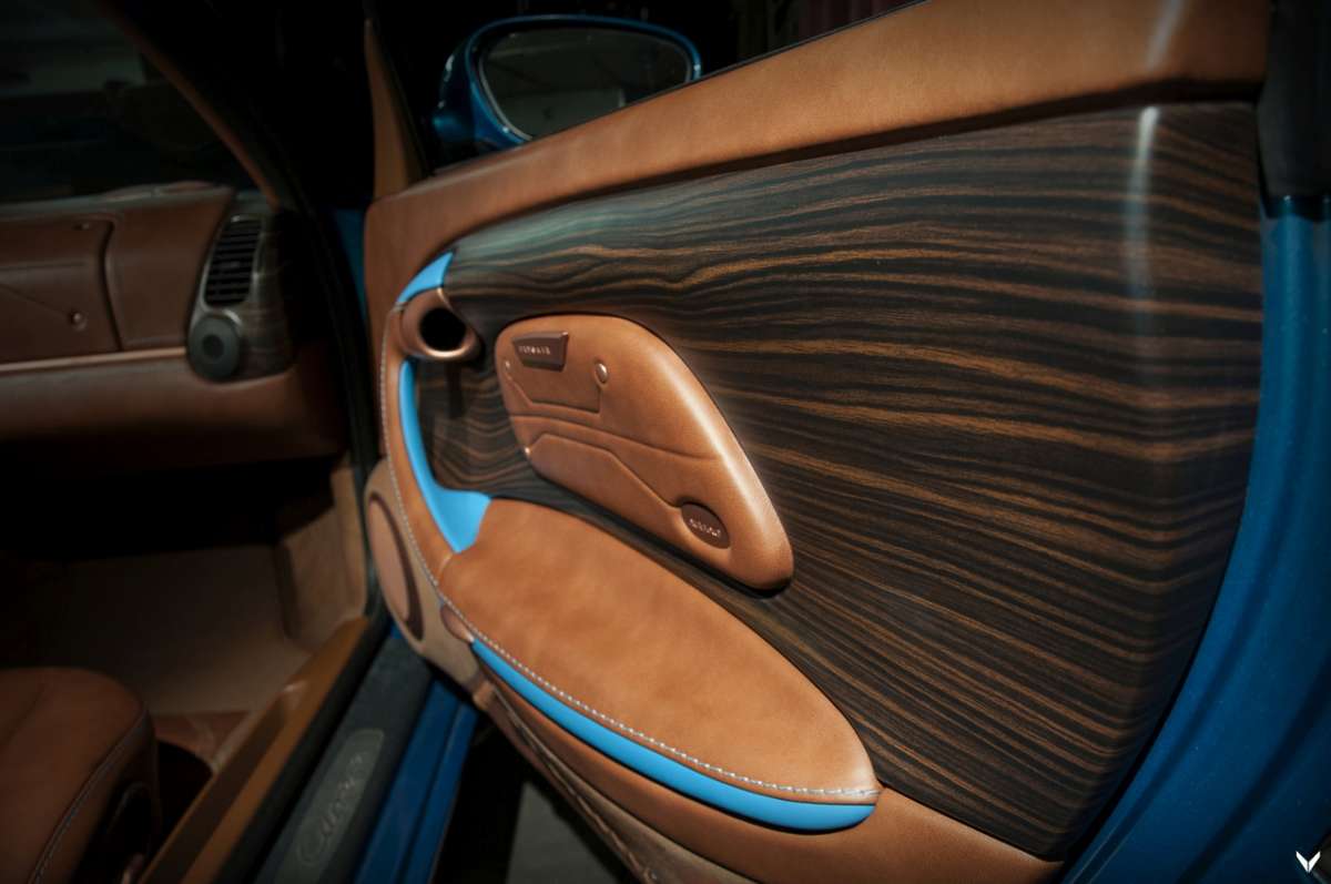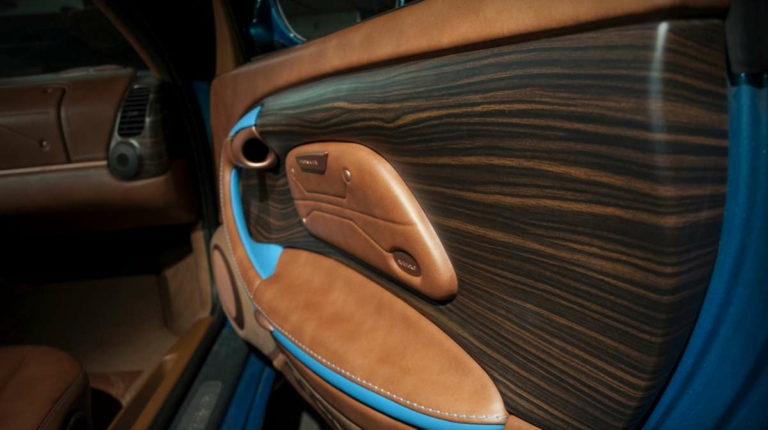 Приборную панель кабриолета тюнеры отделали тонкой коричневой кожей с бело-голубой контрастной стройкой и украсили Х-образным теснением, как на бейсбольной перчатке. Такое же теснение на центральной части рулевого колеса, дверных картах и сидениях. Интерьер декорирован натуральным деревом. Деревянные вставки есть на дверных картах, передней панели и центральной консоли. Из дерева и верхняя часть обтянутого натуральной кожей рулевого колеса с голубым центральным маркером, заимствованным из мира автоспорта. Все стандартные пластиковые панели получили фирменную отделку, которая называется «Vilner Copper Rose». Этот оттенок болгарские тюнеры впервые использовали при доработке Datsun 280Z.