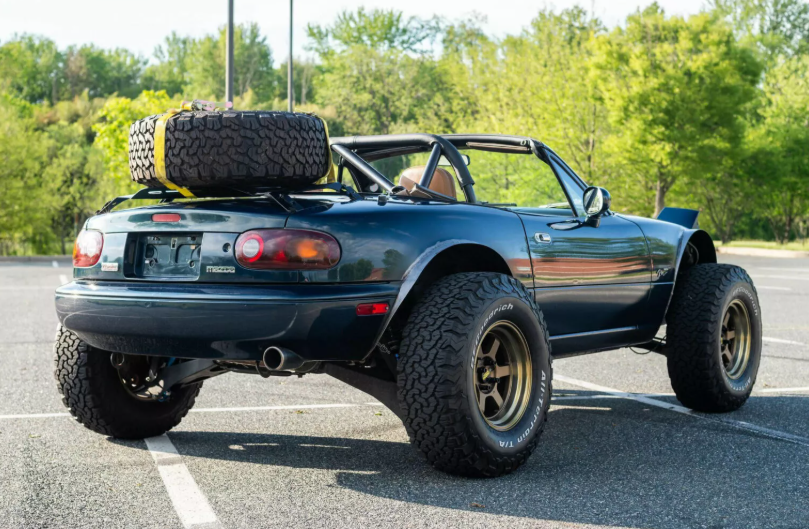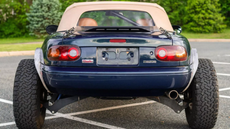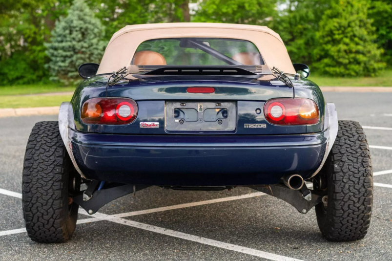 Известно, что выставленная на продажу Mazda MX-5 в версии M Edition относится к первому поколению и была выпущена в 1994 году. Тюнеры дополнили родстер комплектом Paco Motorsports Offroadster, который увеличивает дорожный просвет вдвое, расширили передние и задние крылья, установили дополнительный блок фар, защитные пластины на днище и задний бампер Zerek Fabrication. Также есть каркас безопасности Track Dog Racing Hard Dog.