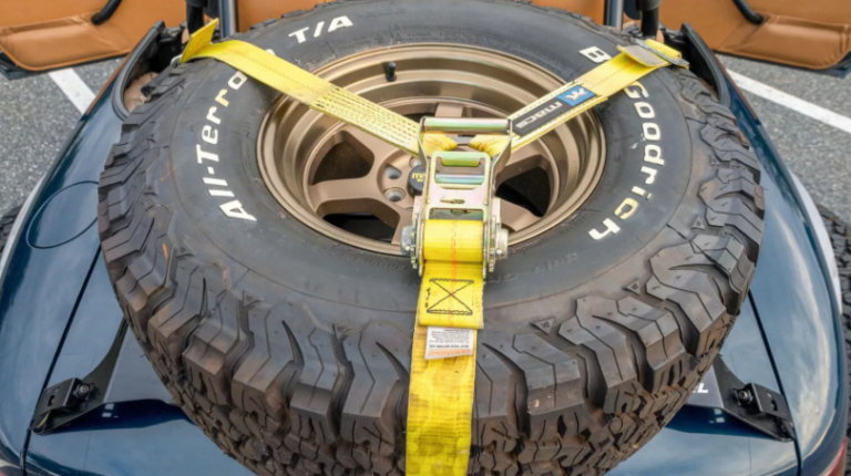 Ездит окрашенный в цвет Montego Blue Mica родстер на 15-дюймовых колесах, обутых в 31-дюймовые шины BF Goodrich. На корме к багажнику SQIIRL MODS прикреплено запасное колесо. Что касается салона, то его оснащение осталось прежним, так же как и отделка. Нет никаких намеков на бездорожье, например, в виде специальных ковриков на полу или прочной обивки сидений.
