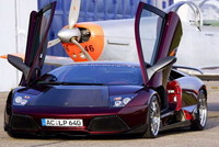 Отметим, что для улучшения аэродинамики Lamborghini Murcielago LP 640 – JB-R укомплектовали новым обвесом, в состав которого входит модернизированный передний бампер с большим воздухозаборником и передним спойлером, «юбки», задний диффузор и задний спойлер.