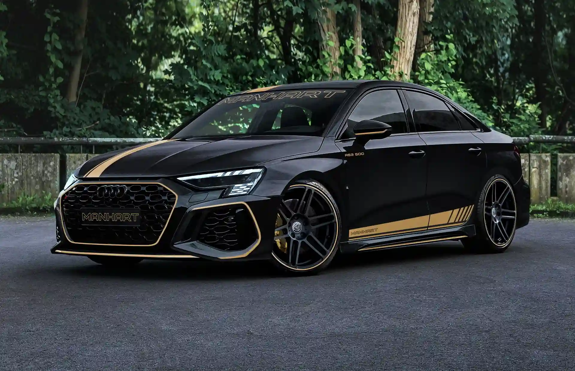 Также автомобили серии Manhart RS3 500 получат новые бамперы, накладки на колесные арки и 20-дюймовые колесные диски Concave One. Но в первую очередь отличить прокачанные седаны и хэтчбеки можно будет по фирменным золотистым наклейкам на кузове. За доплату тюнер предлагает новую подвеску с заниженным дорожным просветом и выхлопную систему из нержавеющей стали.