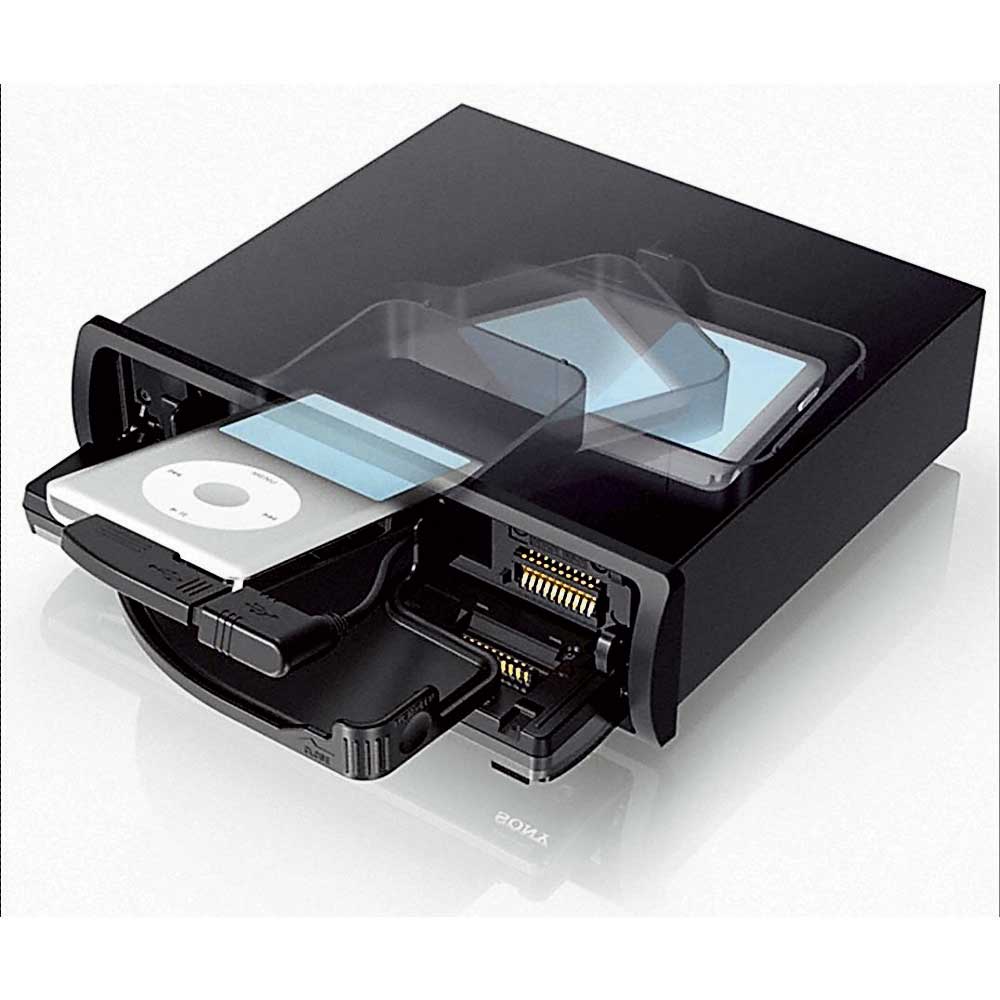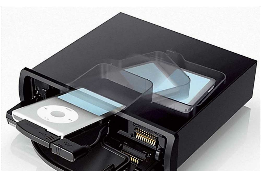 Концептуально новую идею хранения музыкальных файлов предлагает DSX-S100 от Sony. Этот цифровой аудиоресивер лишен CD-привода, вместо которого у него – гнезда для подключения USB-носителей и гаджетов iPod/iPhone. Однако изюминка японской новинки в другом. Конструкторы сделали в ее «однодиновом» корпусе скрытый карман для размещения подключенного плеера. В таком случае интерьер автомобиля будет избавлен от висящих проводов и от самого плеера, скользящего по торпедо или громыхающего в бардачке. Передняя панель Sony DSX-S100 откидывается, открывая доступ к Tune Tray – отсеку для плеера. Аппарат воспроизводит файлы в формате MP3/AAC/WMA и обладает удобным поиском звукозаписей – по исполнителю, альбому, жанру, файлам или папкам. Стоимость 1 260 грн.