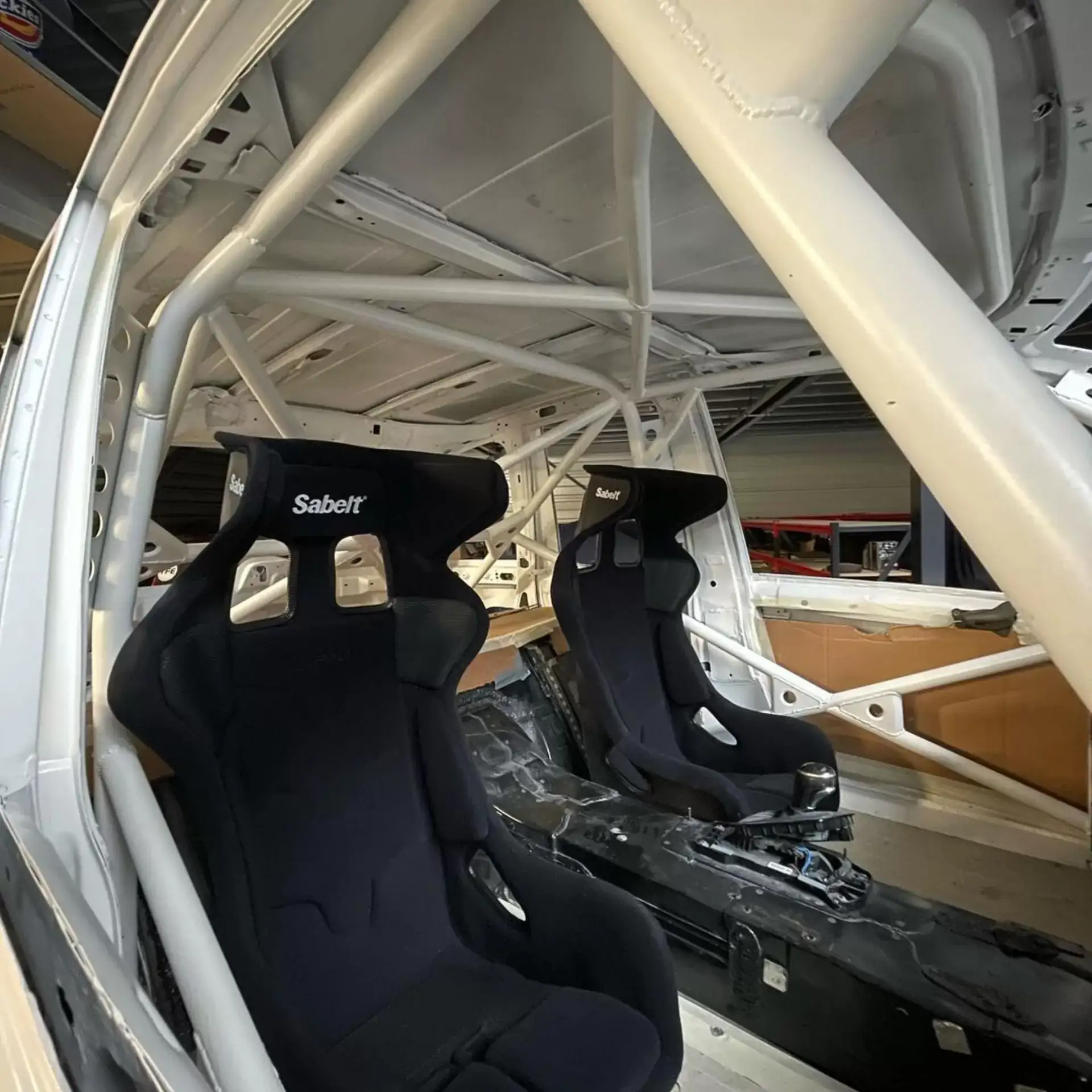 Из салона выбросили все лишнее, включая сиденья. Теперь их только два и это спортивные ковши от Sabelt с большим центральным тоннелем посередине. Также болиду достались спортивное рулевое колесо, небольшой переключатель скоростей и каркас безопасности.