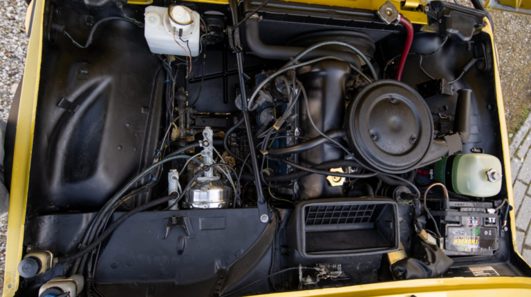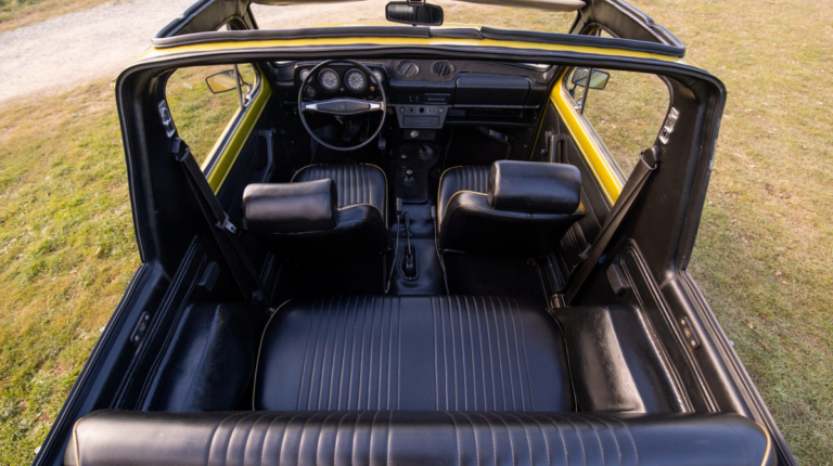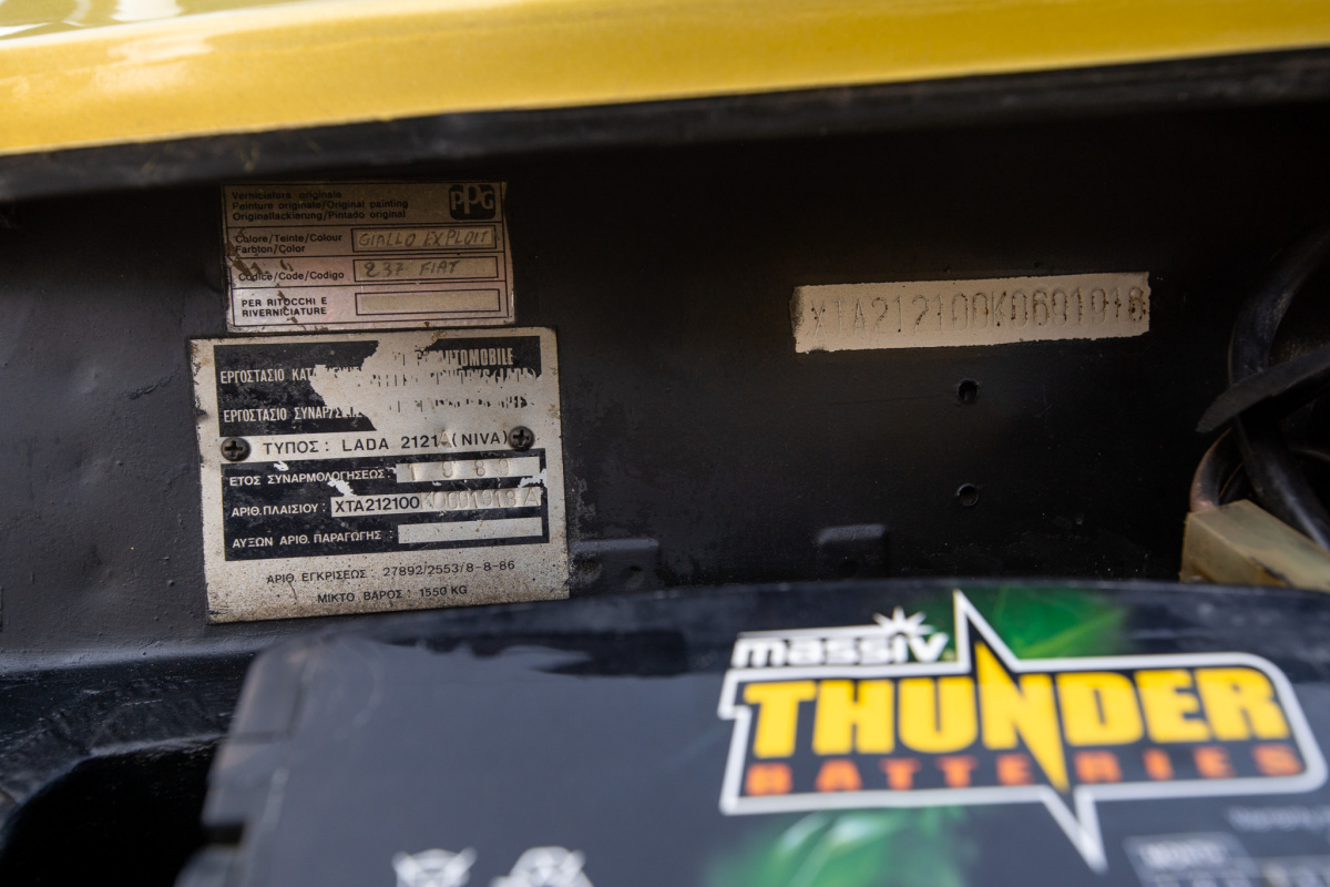 И неслучайно машину окрасили в эффектный цвет «канарейка» (код краски 237 Fiat), о чем свидетельствует соответствующая табличка под капотом. И произошло это, судя по объявлению, совсем недавно – в 2018 году. Под капотом также имеется и греческая табличка.