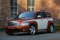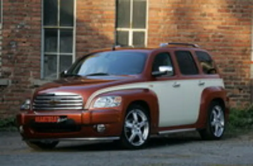 Пятидверный Chevrolet HHR – Capone обзавелся оригинальной двухтоновой окраской кузова (цвета Sunburst Orange/Chicago Cream) в стиле конца 40-х годов прошлого века, набором «аппликаций» из нержавеющей стали (облицовка радиатора, защитный обвес из дуг, корпуса зеркал заднего вида) и фирменными 18-дюймовыми дисками (шириной 8 дюймов) на шинах размерностью 215/45.
