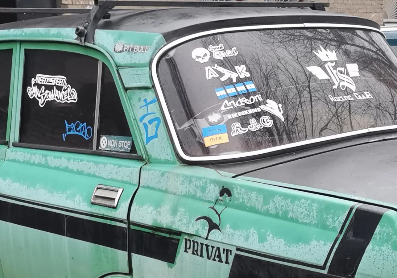 Однако «дутые» бамперы этого «Москвича» - это еще далеко не все прибамбасы. Владелец расписал своего «коня» в духе лучших традиций стритрейсеров-самоучек. Только посмотрите на логотип NOS (Nitrous Oxide System), которая намекает на систему впрыска закиси азота. А как вам надпись «АКМ» с изображением автомата «Калашникова» или другие шедевры: «Racing Club», «Kikboksing», «Privat», «Pit Bull», «Non Stop», «Need for speed» и, конечно же, «Street Racing».