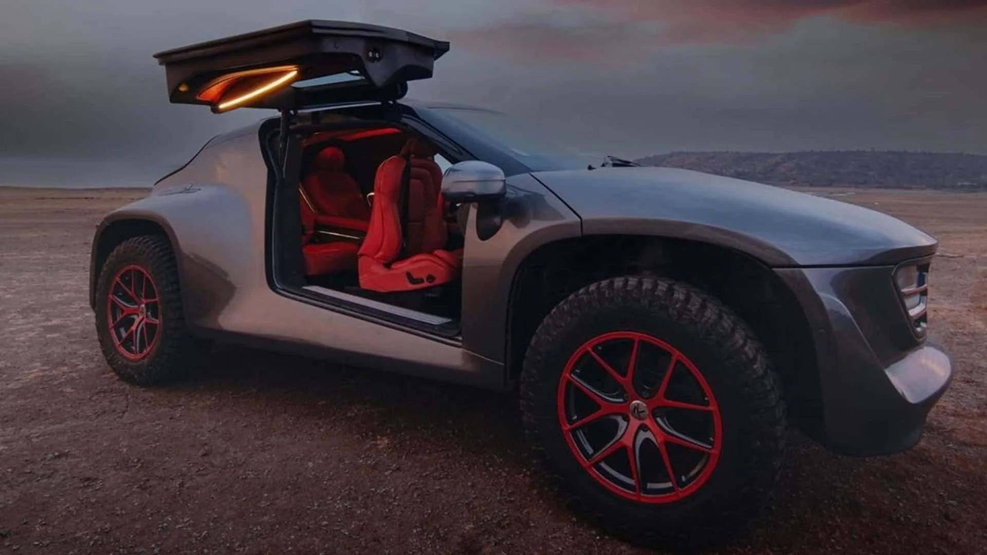 В основании заднего ветрового стекла — два «вентиляционных отверстия». Боковые окна — фиксированные с небольшими открывающимися «форточками» как в спортивных автомобилях. Зеркала заднего вида переехали на передние крылья. Ездит кросс-купе на «зубастых» внедорожных шинах.