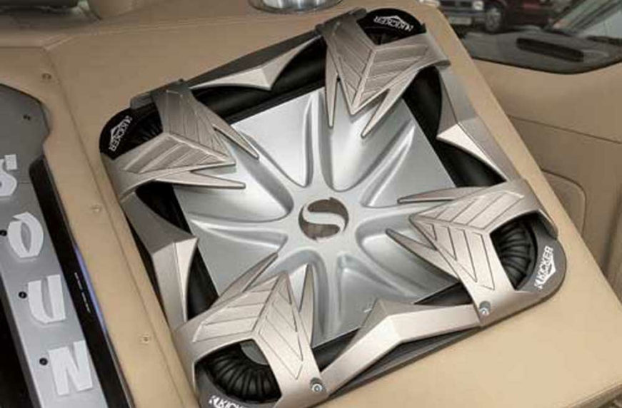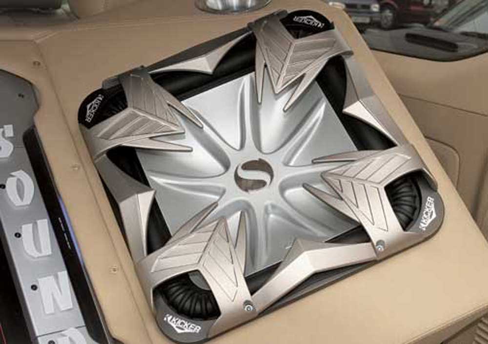 Интерьер изменен лишь там, где устанавливались новые компоненты. Подиумы фронтальных мидбасов и сабвуферные ящики отделаны кожей в цвет «родной» обивки. |