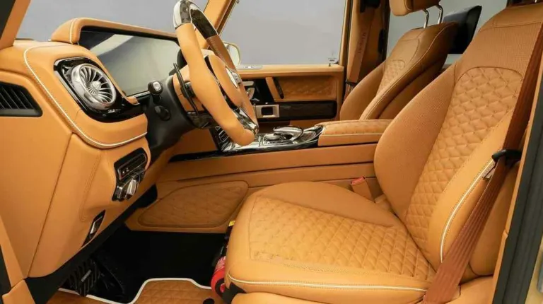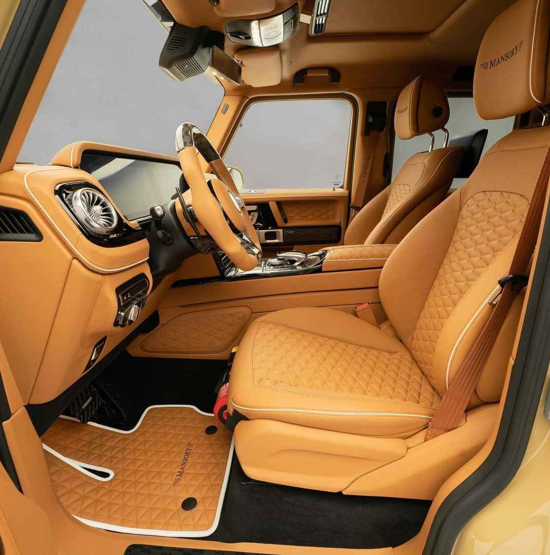 Салон автомобиля также не оставили без внимания. Его отделку выполнили высококлассной кожей светло-коричневого цвета. Кнопку запуска мотора перенесли на потолок. В движение Mercedes-AMG G63 Mansory P900 приводит 4,0-литровый битурбированный двигатель V8 мощностью 900 л.с. Разгон от 0 до 100 км/ч занимает 3,3 секунды. Максимальная скорость – 250 км/ч. Такой Гелендваген существует в единственном экземпляре. Он был создан по заказу клиента.