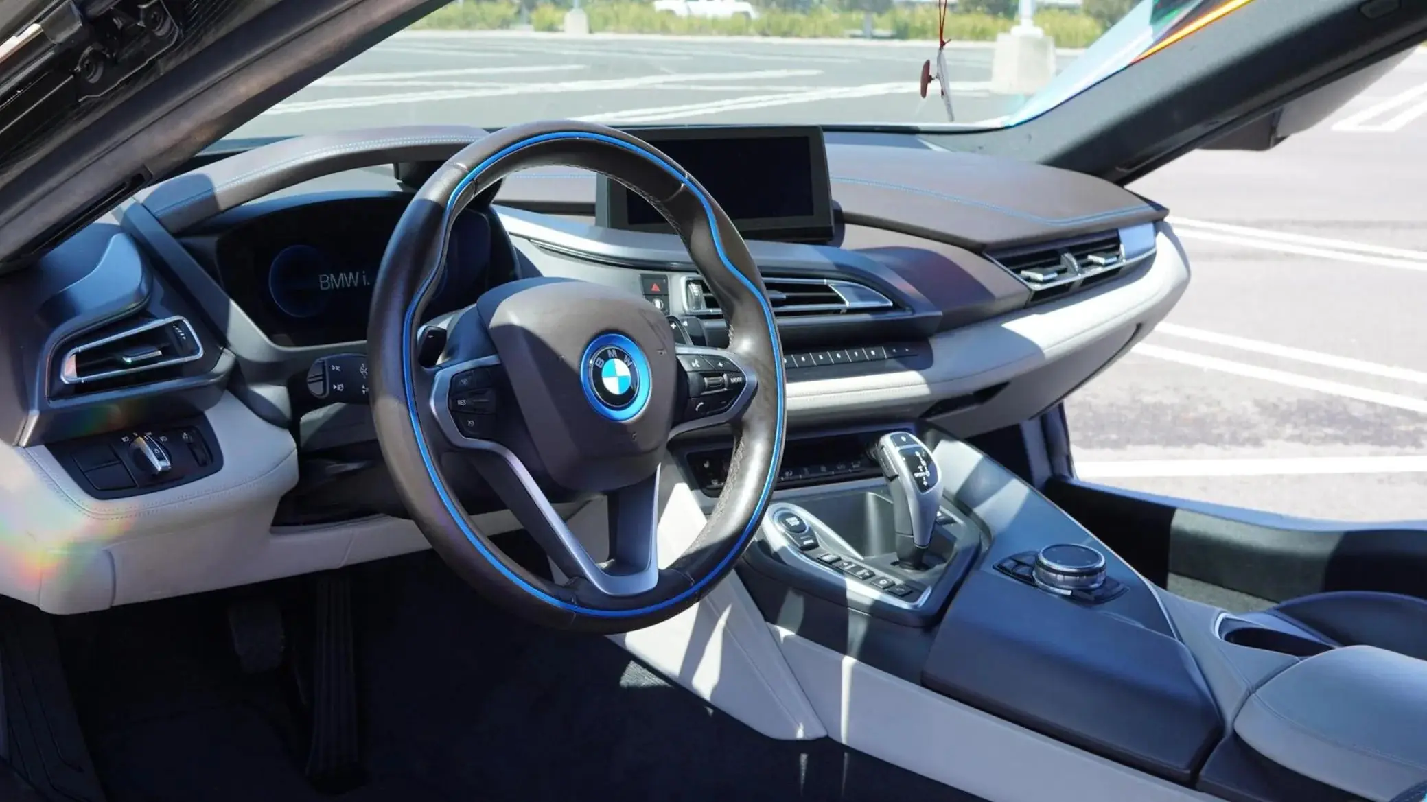 BMW i8 — это плагин-гибрид с двухдверным карбоновым кузовом и четырехместным салоном. Силовая установка среднемоторного купе состоит из 1,5-литрового бензинового турбомотора мощностью 131 л.с. и двух электродвигателей. Мощность переднего — 82 л.с. в обычном режиме и 131 л.с. на пике. Второй электродвигатель на 34 л.с. установлен между основным электромотором и ДВС и используется для запуска «турбомотора». Совокупная отдача силовой установки — 362 л.с. и 570 Нм крутящего момента.