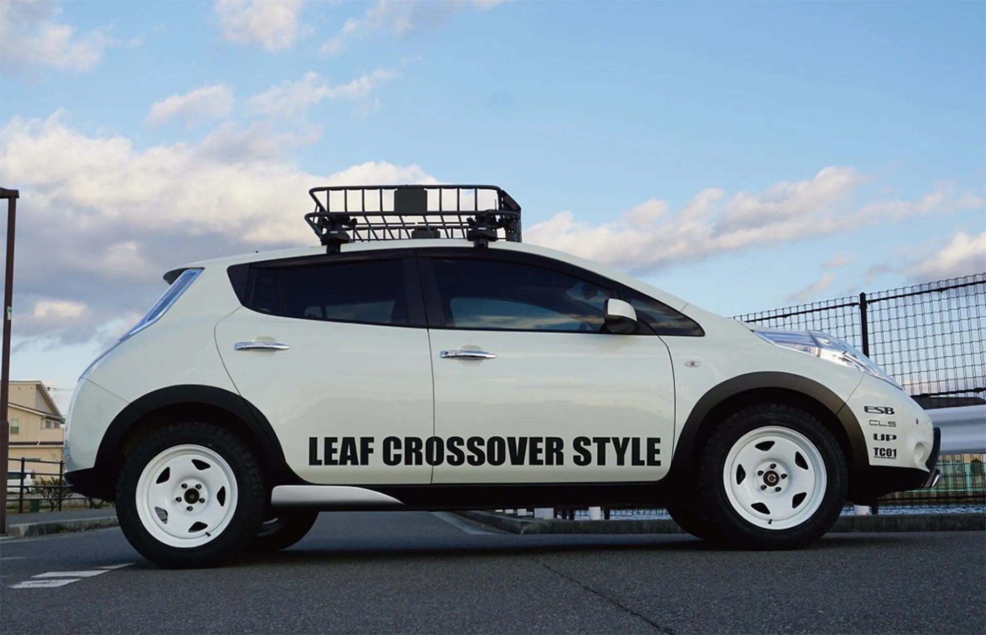 Неординарный проект на базе пятидверного хэтчбека реализовало японское тюнинг-ателье ESB. Электрокару увеличили дорожный просвет до 190 мм (+30 мм). Это было достигнуто за счет установки новых пружин. Также тюнеры установили черный пластиковый обвес по периметру кузова, дополнили передний бампер защитной пластиной и удлинили боковые пороги.