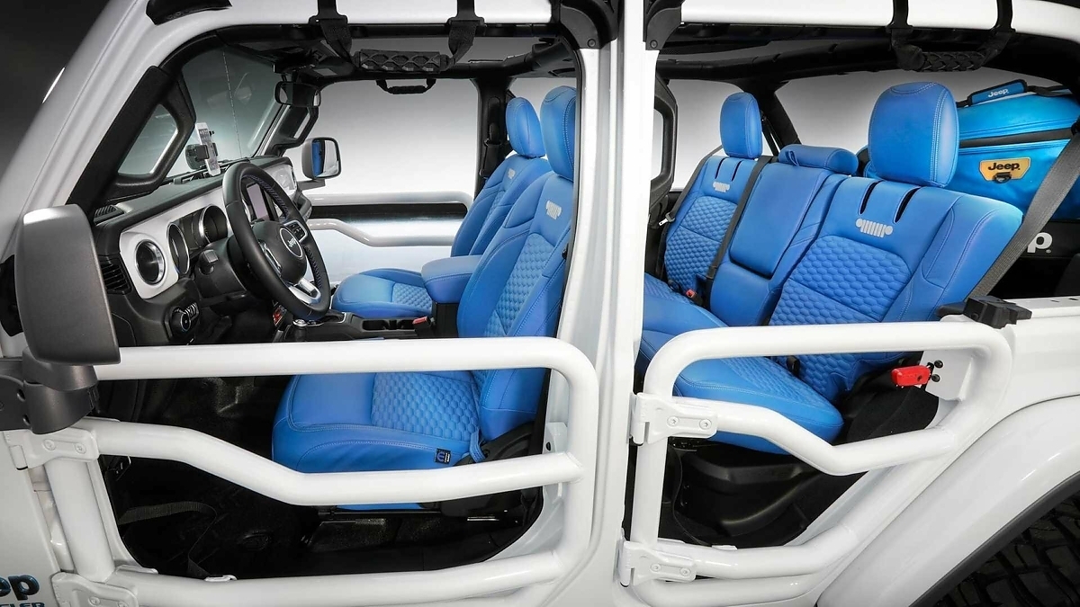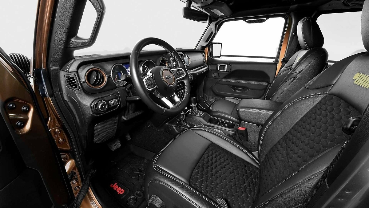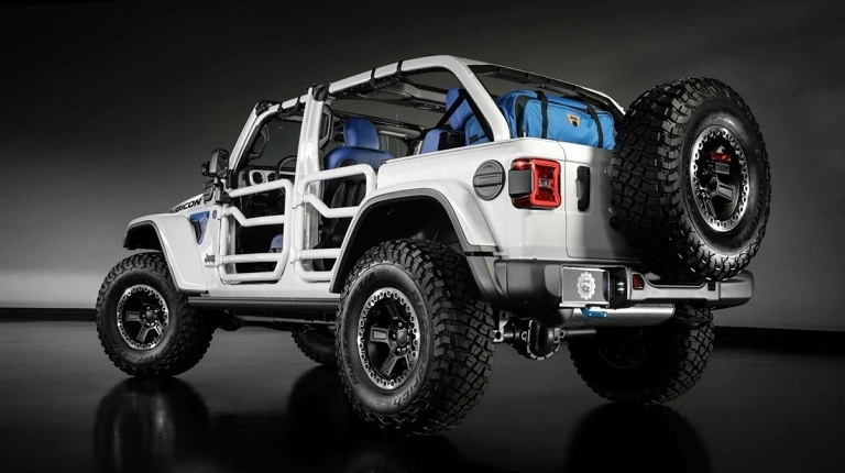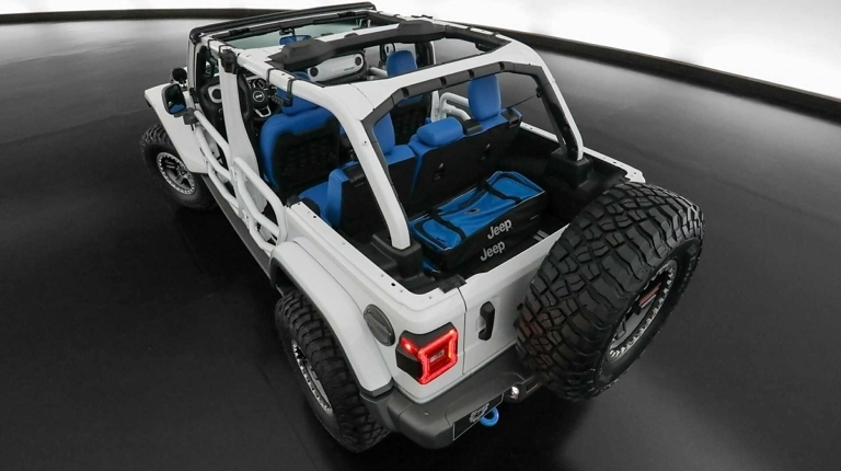 Также тюнер подготовил два интересных экспоната на основе легендарного внедорожника Jeep Wrangler. Один из них – Jeep Wrangler 4xe SEMA Concept. От базовой модели он отличается сверхпрочным лобовым стеклом Gorilla Glass, дополнительными светодиодными фарами, стальным бампером, лебедкой Warn и несколькими другими элементами. В их числе 51-миллиметровый лифт-комплект и 37-дюймовые колеса с бедлоками.