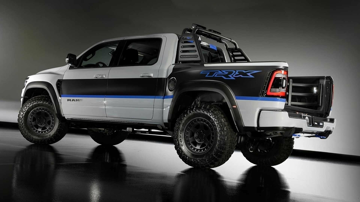 Также тюнеры доработали Ram 1500 TRX, дебютировавший в августе 2020 года. Автомобиль, который производитель называет наиболее мощной и быстрой серийной машиной в сегменте, специалисты Mopar оснастили дополнительной металлической защитой днища. В результате угол въезда пикапа увеличился на 2,3 градуса, до 32,5 градусов. На выставке в Лос-Анджелесе он предстанет под названием Ram 1500 TRX RexRunner SEMA Concept.