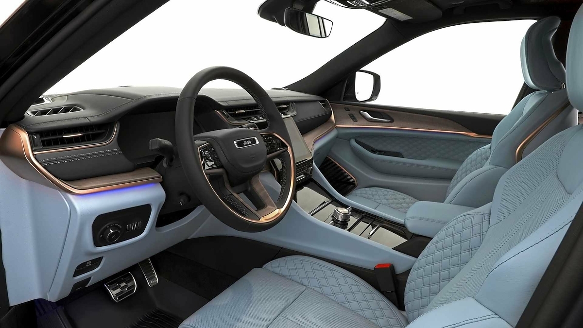 Еще две работы – Jeep Grand Cherokee L Breckenridge и Dodge Challenger Holy Guacamole – получили ряд визуальных изменений, тогда как со стороны техники все осталось нетронутым. В случае с Джипом тюнеры ограничились окраской кузова в матовый темно-синий цвет и медным декором. Отделочные материалы такого же оттенка использованы в интерьере.