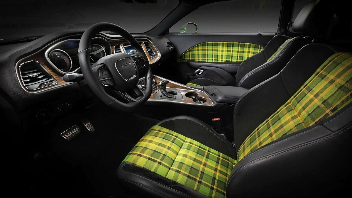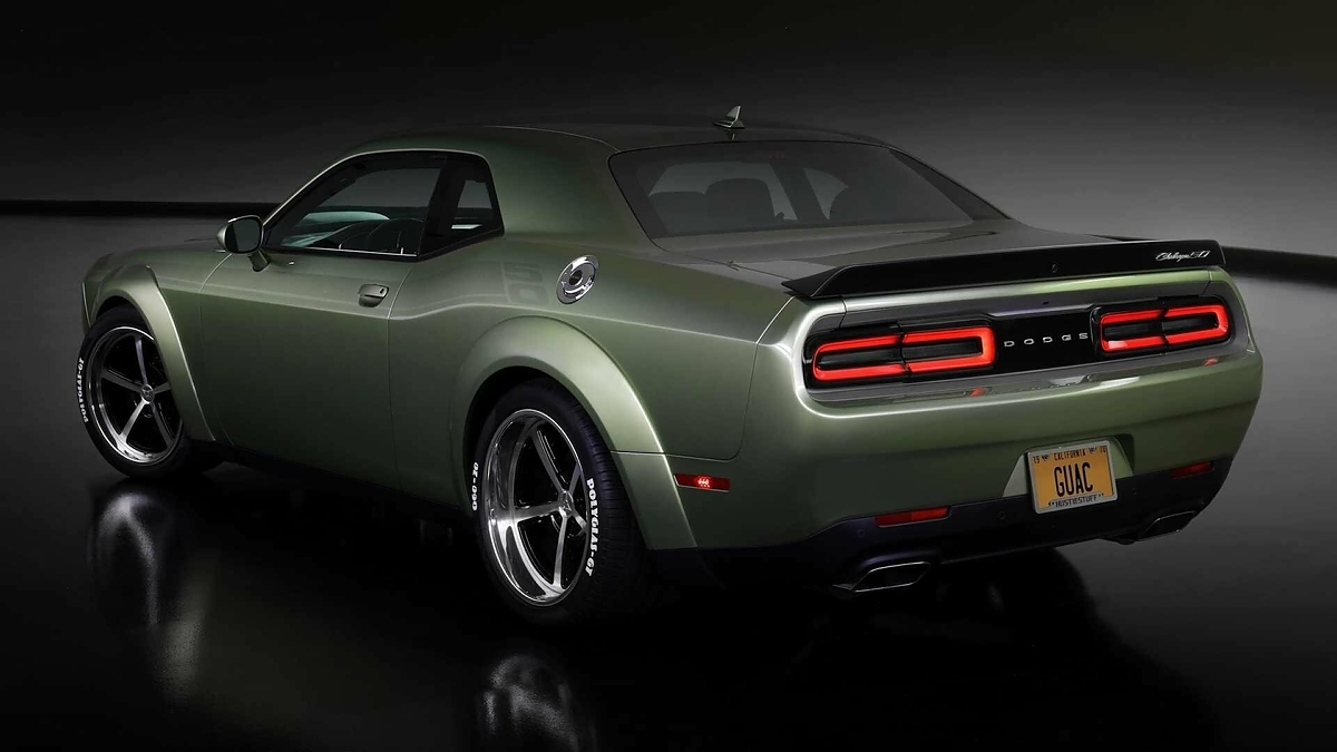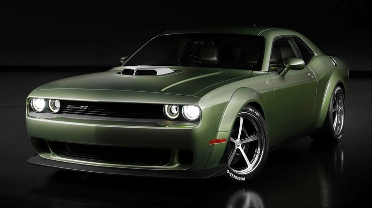 Что касается Доджа, от базового купе Challenger 50th Anniversary Edition, он отличается особым дизайном интерьера в стиле ретро с зелено-желтыми вставками на сиденьях и дверных картах. Кузов маслкара окрашен в оттенок Rotten Avocado (тускло-зеленый). Также тюнер подготовил комплект для занижения подвески и набор особых 20-дюймовых колесных дисков Forgeline.