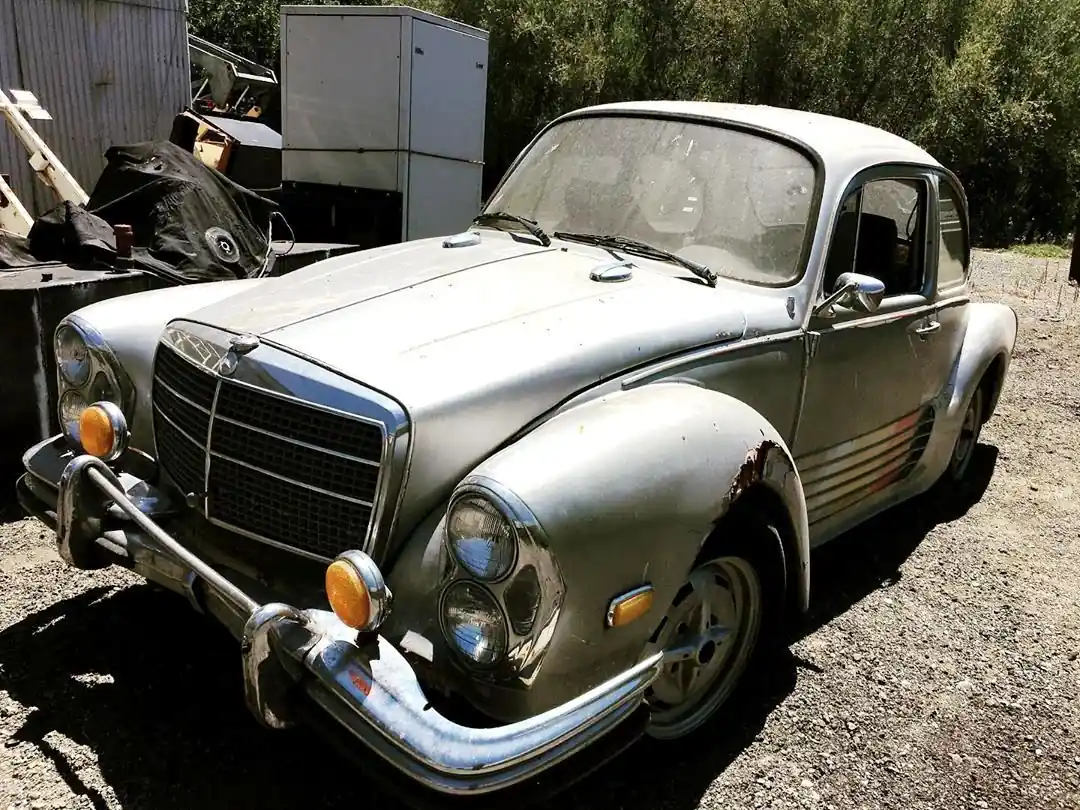 В основе транспортного средства – классический Фольксваген Жук. В порыве создать нечто оригинальное и добавить автомобилю немного лоска, владелец переделал переднюю и заднюю части кузова. Донором для такого тюнинга послужил Mercedes-Benz W108, у которого одолжили фары, бампер и радиаторную решетку.