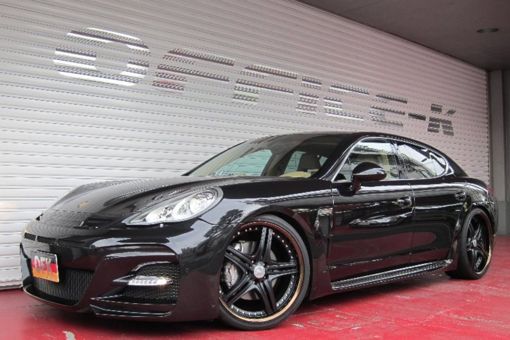 Японский магазин тюнинга Office-K на днях показал свой последний проект под названием Porsche Panamera Black Bison. За основу для «Черного бизона» была взята Porsche Panamera S, которая получила полный комплект обвеса от Office-K, в том числе фирменную выхлопную систему и колесные диски. Пакет усовершенствований включает в себя агрессивную переднюю панель, видоизмененные боковые юбки и расширенные крылья с вентиляционными отверстиями. На двери багажного отделения установлен новый спойлер, а из-под модифицированного бампера с интегрированным диффузором виднеется четыре сопла выхлопной системы. Седан Porsche в исполнении Office-K также оснащен комплектом из четырех 22-дюймовых литых колесных дисков Mahora.
