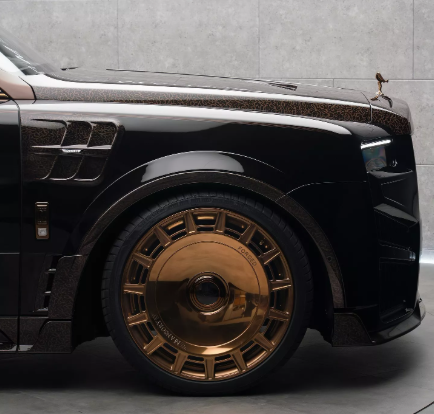 Проект основан на обновленном Rolls-Royce Cullinan Series II и получил название Linea D’Arabo. Автомобилю переработали решетку радиатора и бампер, дополнив их медными акцентами, установили капот с бронзовой отделкой и арабскими буквами. Также модели добавили новые светодиодные ДХО и установили карбоновый обвес, который добавил визуальной агрессии. Колесные арки расширили, чтобы они уместили 24-дюймовые кованые диски с медной отделкой, обутые в низкопрофильные шины размером 295/30 R24.