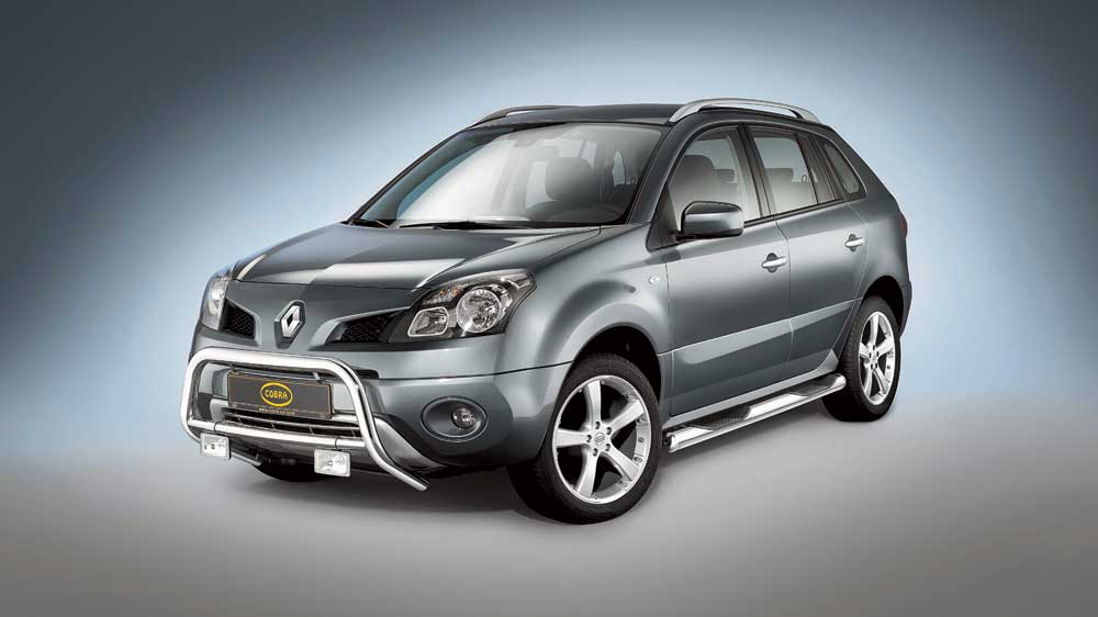 Кроссовер Renault Koleos получил пакет аксессуаров от Cobra Technology & Lifestyle. Открывает программу передняя дуга Cobra N+, которая делает внешность машины более «внедорожной». К ней предлагается пара дополнительных фар в хромированных корпусах. К нижней части переднего бампера крепится более сдержанная дуга Cobra N+ Cityguard в паре с полированной решеткой-«грилем». Боковые пороги надежно укрыты стальными порогами (с интегрированными подножками). На выбор покупателям предоставляется несколько вариантов фирменных легкосплавных дисков диаметром 18, 19 и 20 дюймов. Завершают пакет переделок крупные «банка» и пара хромированных патрубков выхлопной системы.