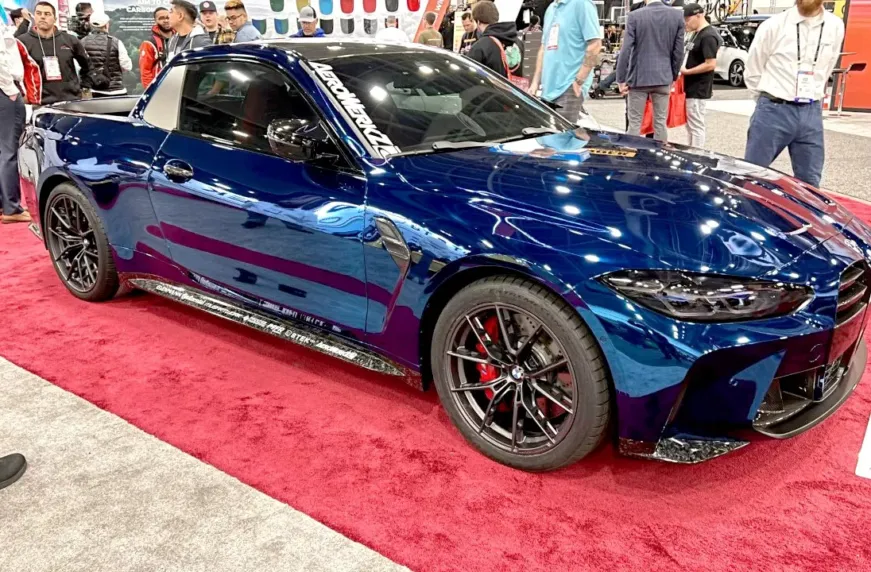 По словам тюнера, донорский BMW M4 Competition был куплен новым в апреле этого года. Процесс превращения премиального купе в пикап занял всего полтора месяца. Результат вы видите на фото и он вызывает не однозначные чувства, особенно, если вспомнить каким был этот автомобиль до переделки.