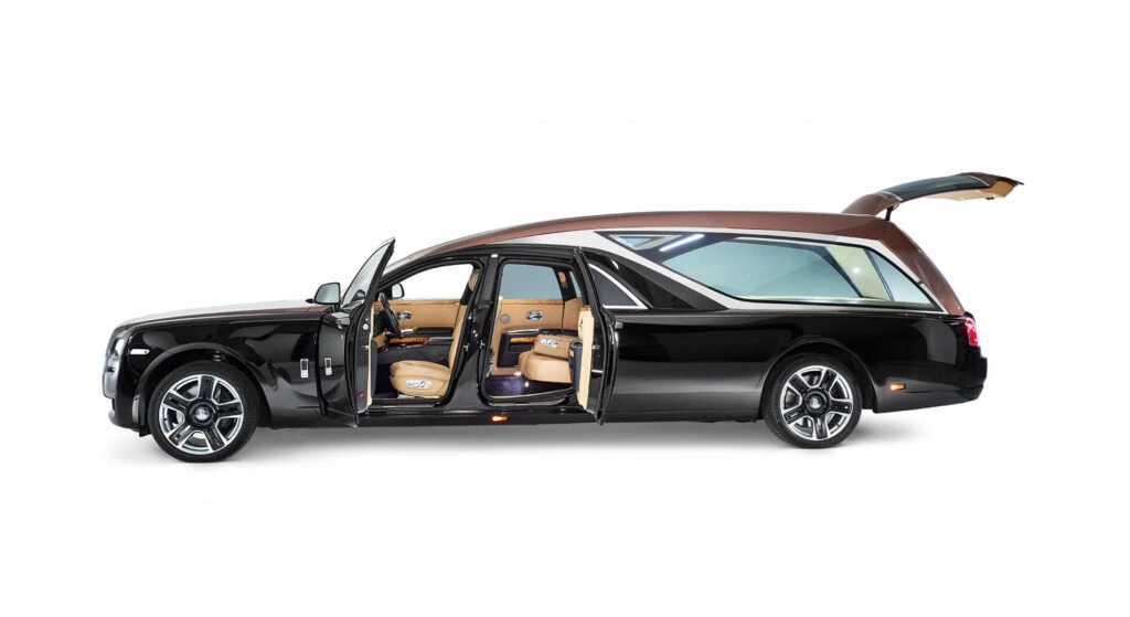 Итальянский автосалон Biemme Special Cars выставил на продажу уникальный катафалк, построенный на базе представительского седана Rolls Royce Ghost. Автомобиль под названием Ghoster («Призрак») отличается элегантным капотом бронзового цвета. В такой же цвет окрашены крыша и корма катафалка. В процессе создания «Призрака» базовому седану увеличили колесную базу, добавив трубчатую раму. У Rolls Royce Ghost второго поколения она достигает 5546 мм.