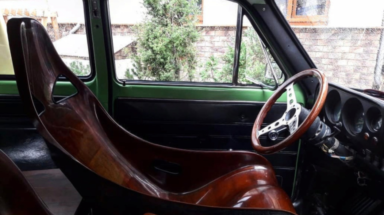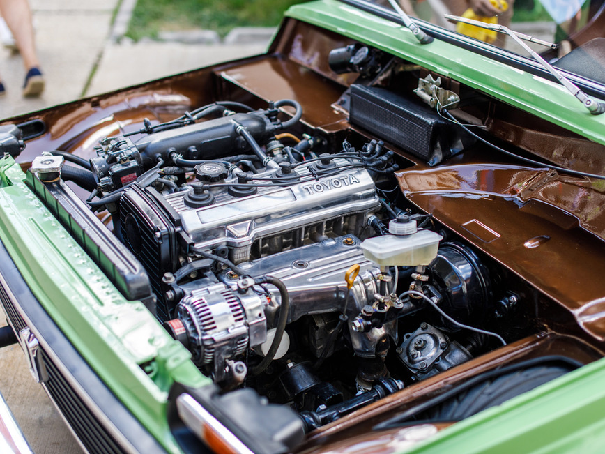 Следующим этапом стал свап двигателя. Нива получила 1,8-литровую четверку Toyota JZX90 4S-FE мощностью 130 л. с. и автоматическую КПП. Кроме того, внедорожник получил сдвижную тканевую крышу.