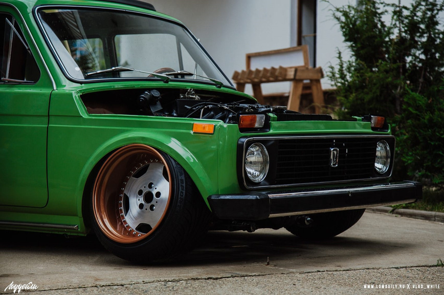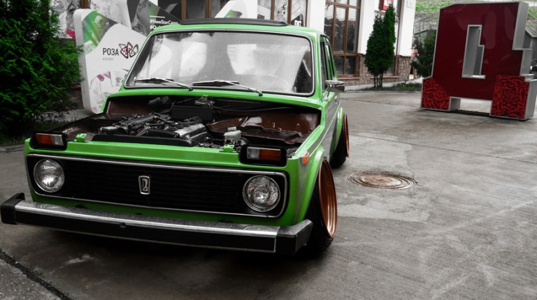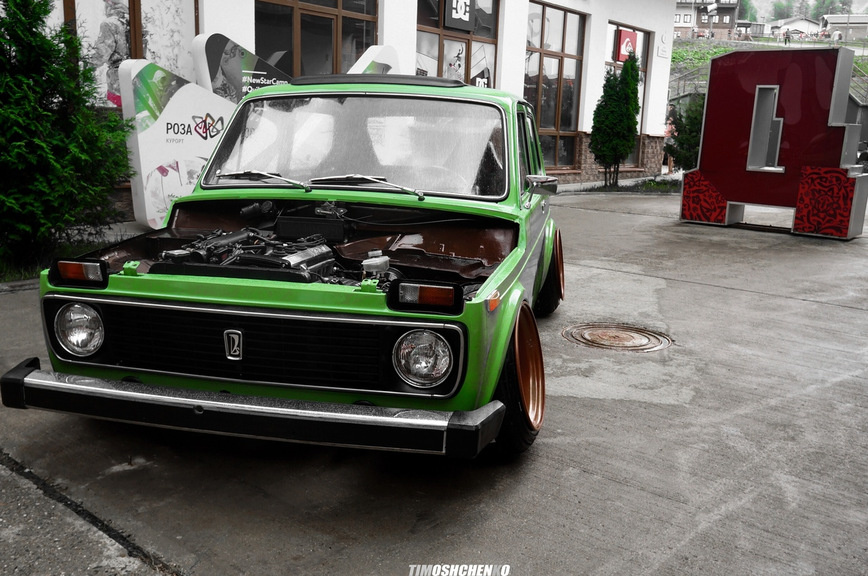 ВАЗ-2121 1984 года стал основой для очень необычного проекта. Тюнинг Нивы подразумевает не привычную подготовку к бездорожью, а стенс. То есть, автомобиль решили занизить.
