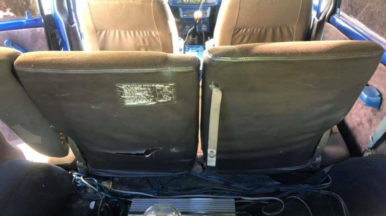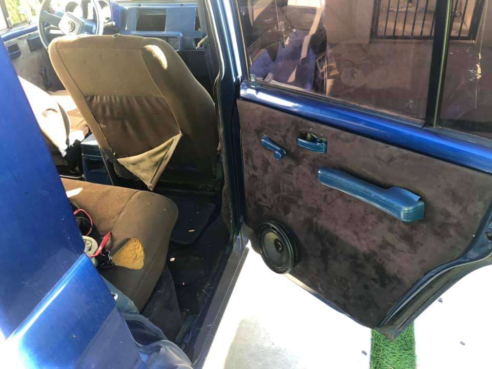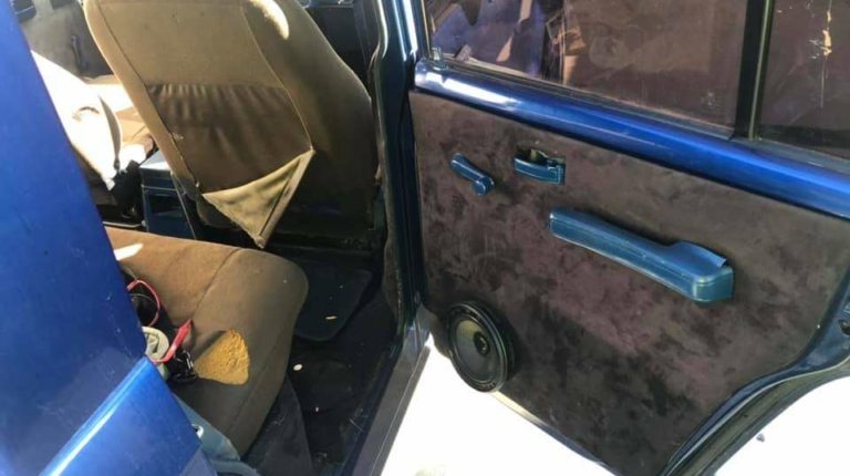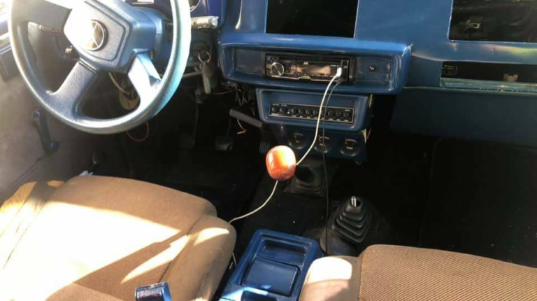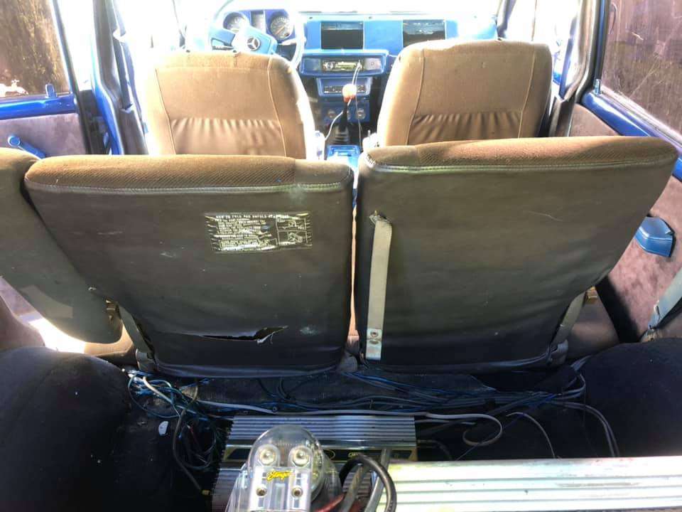 Зачем-то заниженная подвеска и огромные хромированные диски выглядят, конечно, эффектно, но в тоже время немного глупо. Хотя навороченная аудиосистема и шильдик Мерседеса на руле в полностью «убитом» салоне выглядят намного глупее. Кстати, отдавать дорогую акустику вместе с авто владелец не собирается.