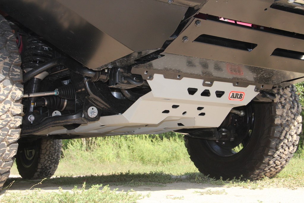 Двигатель, коробку передач и раздаточную коробку, дифференциалы и боковины кузова надежно предохраняют от повреждений специальные защитные элементы от ARB.