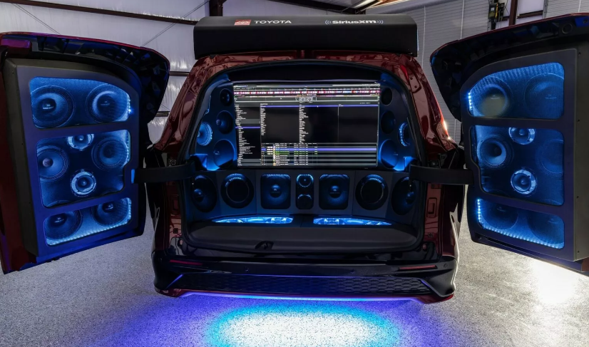 Основой для этого проекта, как уже понятно из названия, стал семейный минивэн Sienna. Его оснастили 60 динамиками, включая четыре 12-дюймовых сабвуфера, 14 высокочастотных динамиков, шесть рупоров и 36 динамиков среднего диапазона. Также установили 16 усилителей мощностью 25 000 Вт, а в багажном отсеке разместили 43-дюймовый телевизор с поддержкой Wi-Fi.