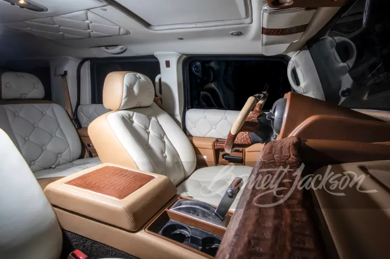 Радикальные изменения коснулись и салона внедорожника. Его отделали пятью типами кожи коричневого и белого цветов, среди которых есть и кожа аллигатора. В оснащение включили уникальное рулевое колесо со вставками из натурального дерева, а также мощную аудиосистему. Под капотом Dartz Prombron Black Stallion установлен 6,0-литровый турбодвигатель Hummer V8 мощностью 1500 л.с. Он работает в паре 6-ступенчатой автоматической коробкой передач.