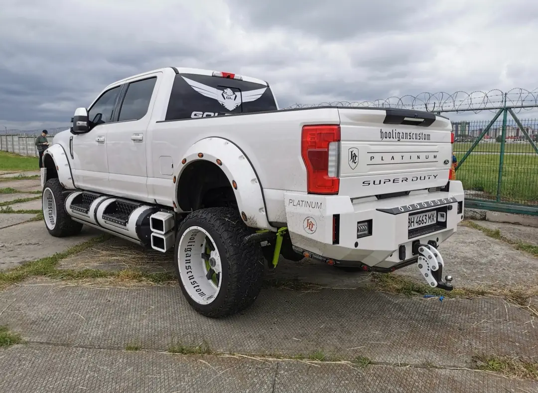 И здесь самым эффектным экспонатом стал пикап Ford Super Duty F-250 Platinum, над которым поработали специалисты местного ателье Hooligans Custom.