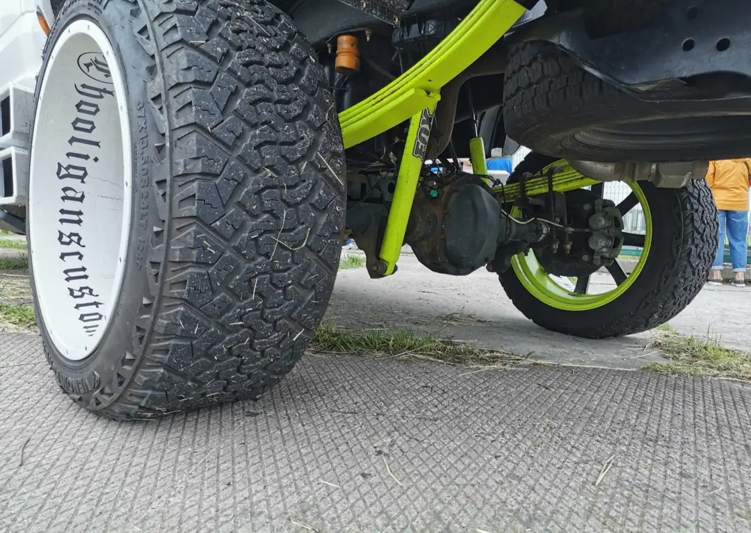 Очеь свежо смотрятся и выкрашенные в ярко-зеленый цвет элементы мощной подвески колёс. Особенно необычно пикап выглядит с включённой светодиодной подсветкой, которая только усиливает эффект эксклюзивности.