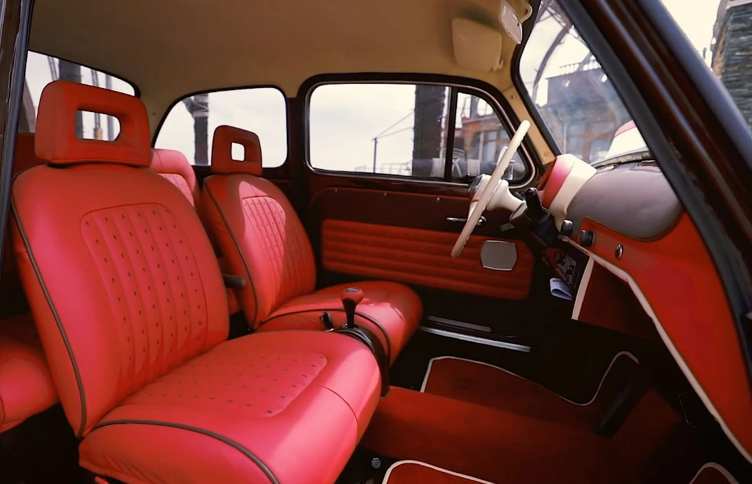 Передние сиденья взяли от польского малыша Fiat 126 (Maluch), основательно их восстановив. Потолок салона отделал алькантарой.Рулевое колесо также обшили кожей, причем применили уникальной прострочку, применямую исключительно на машинах Porsche 911.