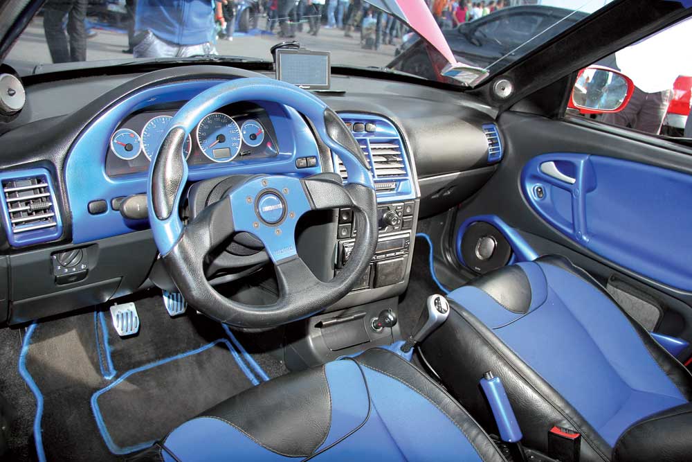 Как будто две разные машины. Красная – «заряженный» стритрейсерский болид с прокачанным мотором и аэродинамическим обвесом. Синяя – «музыкальная», с ослепительным флокированным салоном, почти дюжиной динамиков и полным багажником прочей аппаратуры.