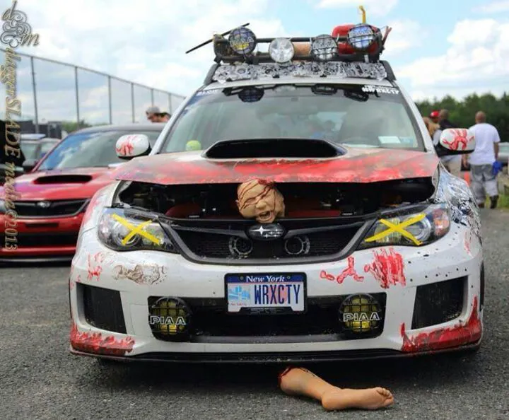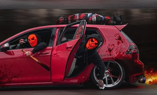 В ночь с 31 октября на 1 ноября во многих странах традиционно отмечается праздник Хэллоуин, на который принято делать светильники из тыквы и наряжаться в необычные костюмы. Многие автовладельцы не упускают возможность соответствующим образом оформить и своих «стальных коней». В итоге автомобили превращаются в весьма оригинальные декорации из фильмов-ужасов, при взгляде на которые у многих пробегает мороз по коже. Машины не только разрисовывают, а делают из них целые выставочные композиции с использованием муляжей фрагментов человеческих фигур, гигантских пауков, скелетов и прочих ужасных персонажей.