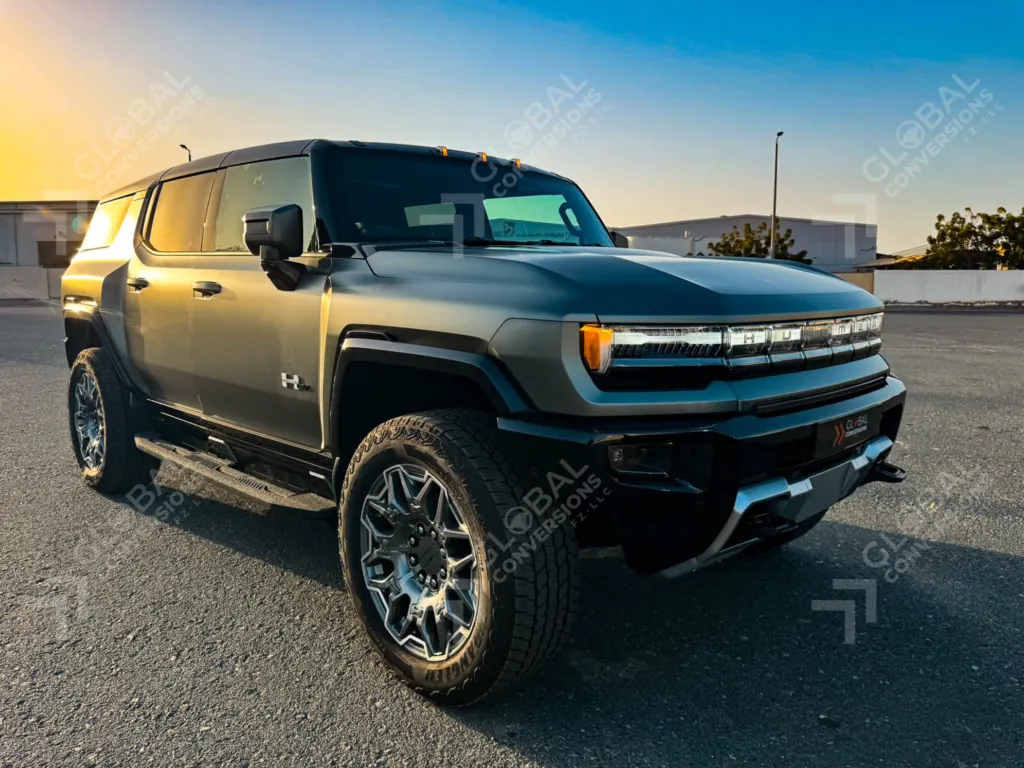 Компания Global Conversions, базирующаяся в ОАЭ, начала переоборудовать GMC Hummer EV в праворульный. Первый автомобиль уже передали клиенту. Им оказался внедорожник матово-зеленого цвета.