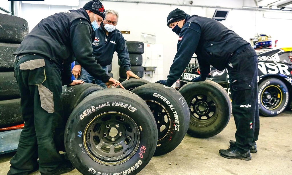 Для дождевых покрышек асфальт был недостаточно влажен, а довольно жесткий спортивный «слик», применяемый в гонках EuroNASCAR, где машины весят под полторы тонны, попросту не мог прогреться на такой трассе.