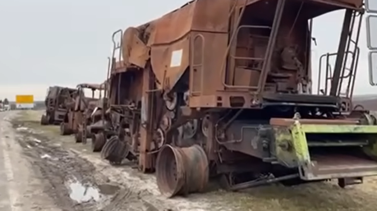 Уничтоженную россией украинскую сельхозтехнику привезли на границу с Польшей (видео)