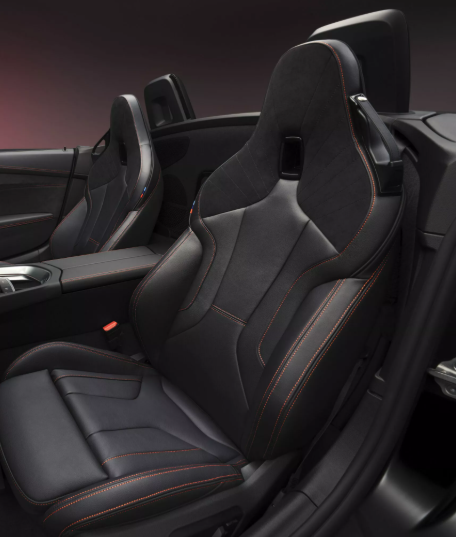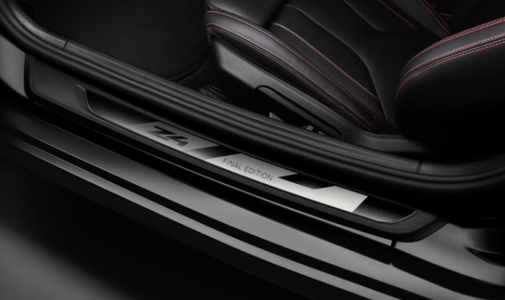 Версия Final Edition основана на базе комплектации Z4 M40i и оснащена пакетом затемнения Shadowline. Он включает глянцево-черную решетку радиатора, корпуса зеркал заднего вида и патрубки выхлопной системы, а еще мягкий верх цвета «Лунный черный». На фоне этой тьмы ярко-красные тормозные суппорты M Sport выглядят очень привлекательно. Темная тематика продолжается в салоне авто, где ярким акцентом на фоне черной отделки стали трехцветные ремни безопасности M и красная прострочка.