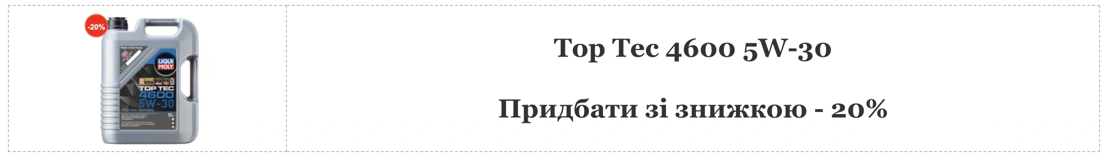 Для тех автомобилистов, которые используют при замене масла именно 5W-30, хорошим вариантом будет Тop Tec 4600 от LIQUI MOLY. Его универсальность применения понравится большинству автовладельцев – масло подходит для двигателей автомобилей как 90-х годов уже прошлого столетия, так и для самых современных моторов Евро5 и Евро6 начала XXI века.