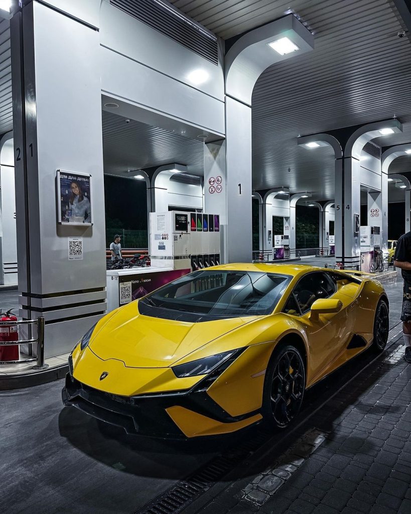 На одной из заправочных станций Киева был замечен ярко-желтый Lamborghini Huracan Tecnica. Он был представлен в конце 2022 года и является флагманом итальянской марки.