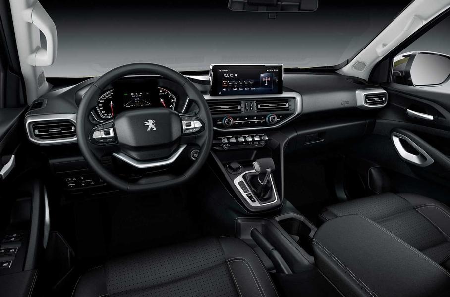 Фирменный интерьер адаптирован к сегменту среднеразмерных пикапов. В частности, 2-спицевое рулевое колесо напоминает о модели PEUGEOT 3008, а крупный 10-дюймовым HD-дисплей с горизонтальной ориентацией напоминает о флагманской модели PEUGEOT 508.