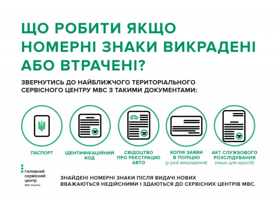- в случае кражи номеров – справку из Нацполиции;