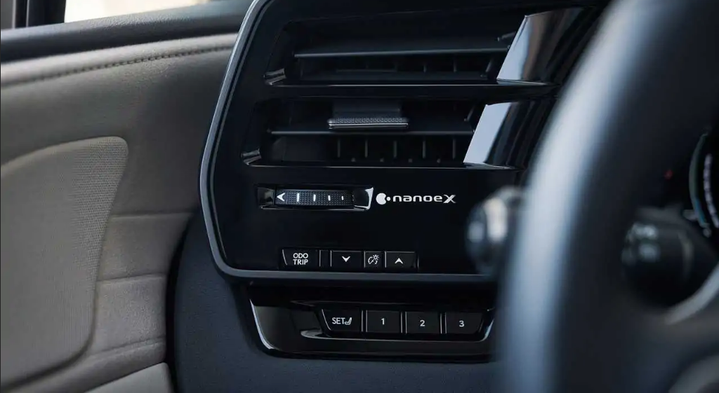 Она разработала систему контроля качества воздуха Nanoe X. Помимо борьбы с бактериями и вирусами она поможет справляться с неприятными запахами. Новая технология работает путем выброса наноразмерных молекул воды, которые содержат микроскопические гидроксильные радикалы, в воздушный поток системы HVAC. Это вещество расщепляет и нейтрализует загрязнители, попадающие в салон.