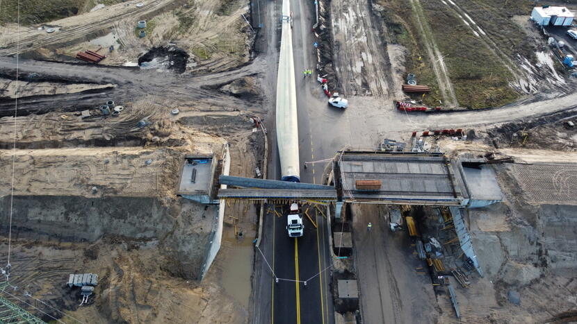 В Польше тягач с лопастью от ветрогенератора обвалил секцию моста (видео)